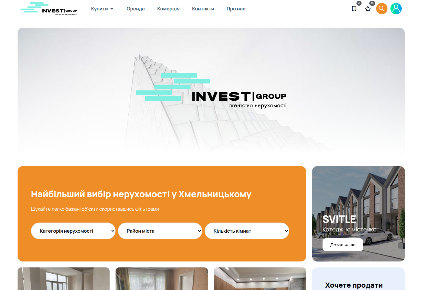 Ми створили сучасний та функціональний сайт для агенції нерухомості Invest, який поєднує зручність користувача, високу швидкість роботи та можливості автоматизації для рієлторів. Платформа розроблена з урахуванням специфіки ринку нерухомості та забезпечує ефективну взаємодію між агентами й клієнтами.